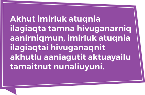 Una ilagiya unniqtuqtai tapkuat inuliqutit huguqtitni pipkagauyut akhut imirluk atuqnianit, tahapkuatlu hunat tapkuat nunaliuyut pinahualaqni pinahuarniqtik mikhigiaqninut tapkuat akhurnaqnit huguini inuliqutitlu akiliqtutai piqatiguiyai imirluk atuqnianut.